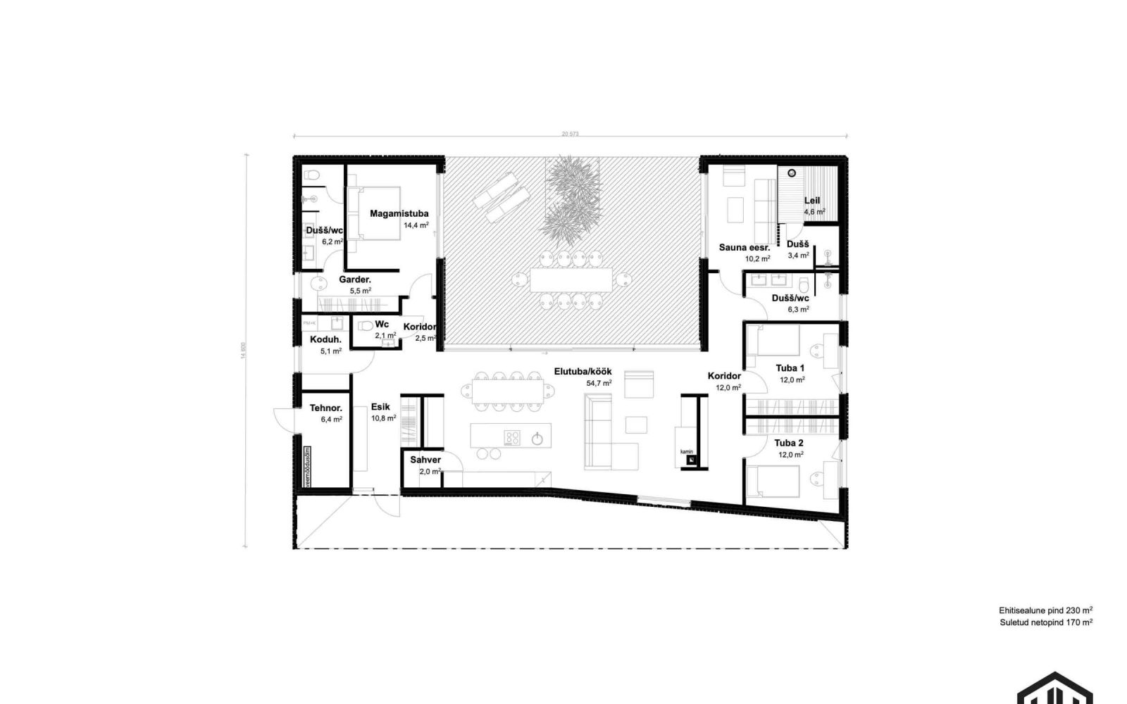 Maja on nutikalt jaotatud elu- ja magamistsoonideks, pakkudes lisaks ka privaatse saunala. Kliendid saavad kohandada maja vastavalt oma vajadustele, valides lae kõrguse 3-3,8 meetri vahel ning kohandades suurust ja ruumide arvu.