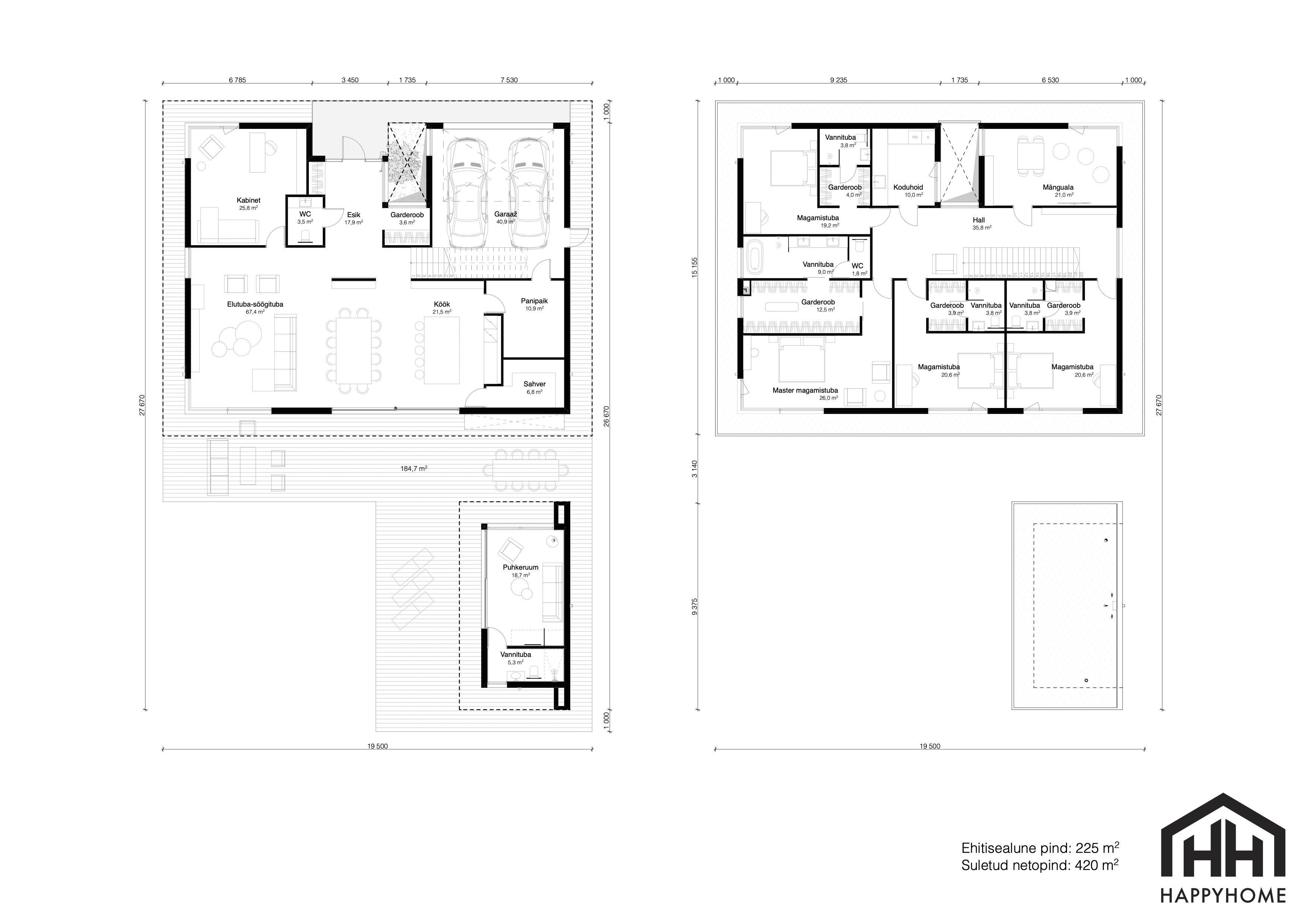 The house can be made to order in a size and layout to suit you. In addition to all the houses, we also offer a garage, carport, sauna/guest house, shed and other small buildings.use are 3.8 m 3,5m or 3 m tall, making the house very spacious and bright.